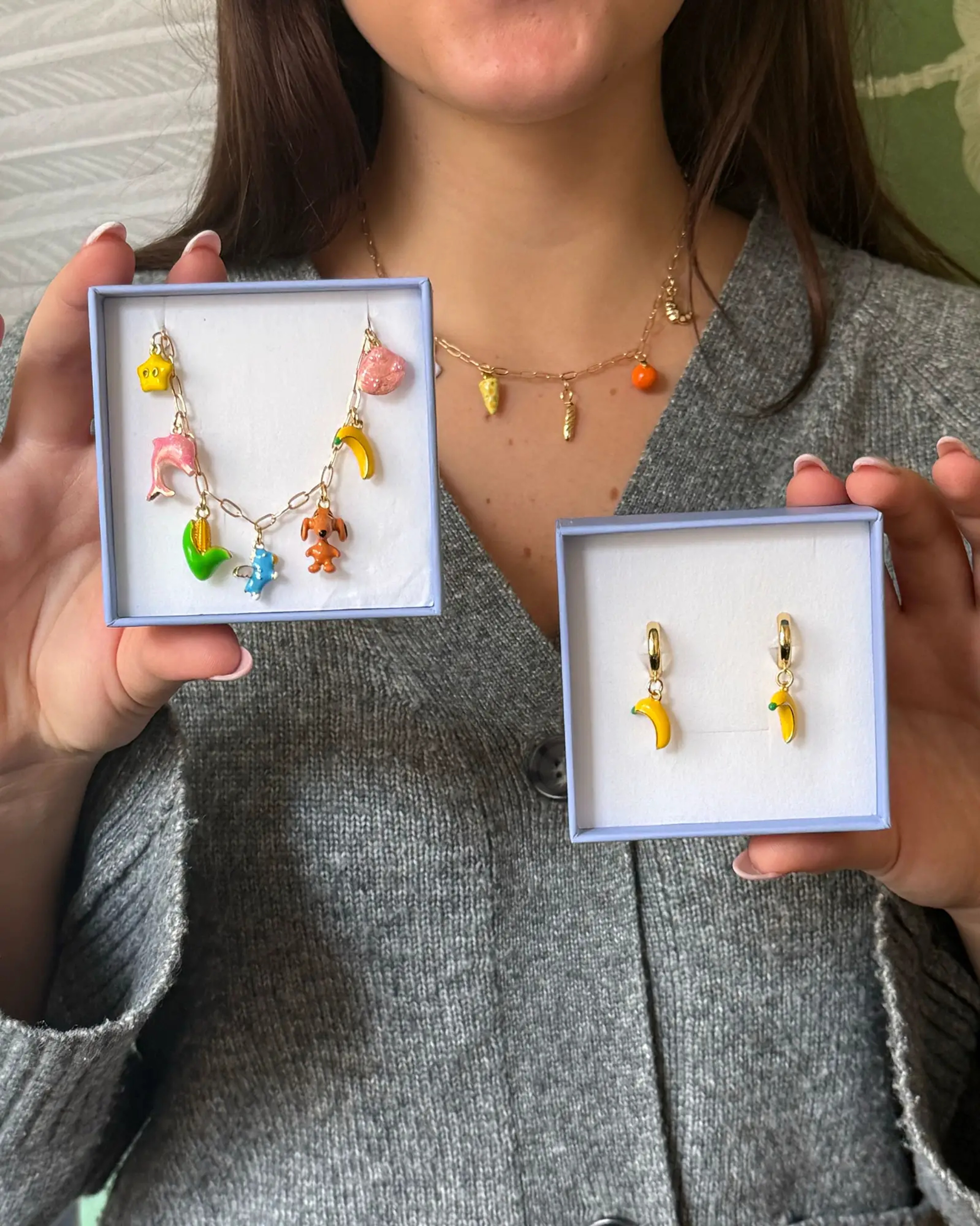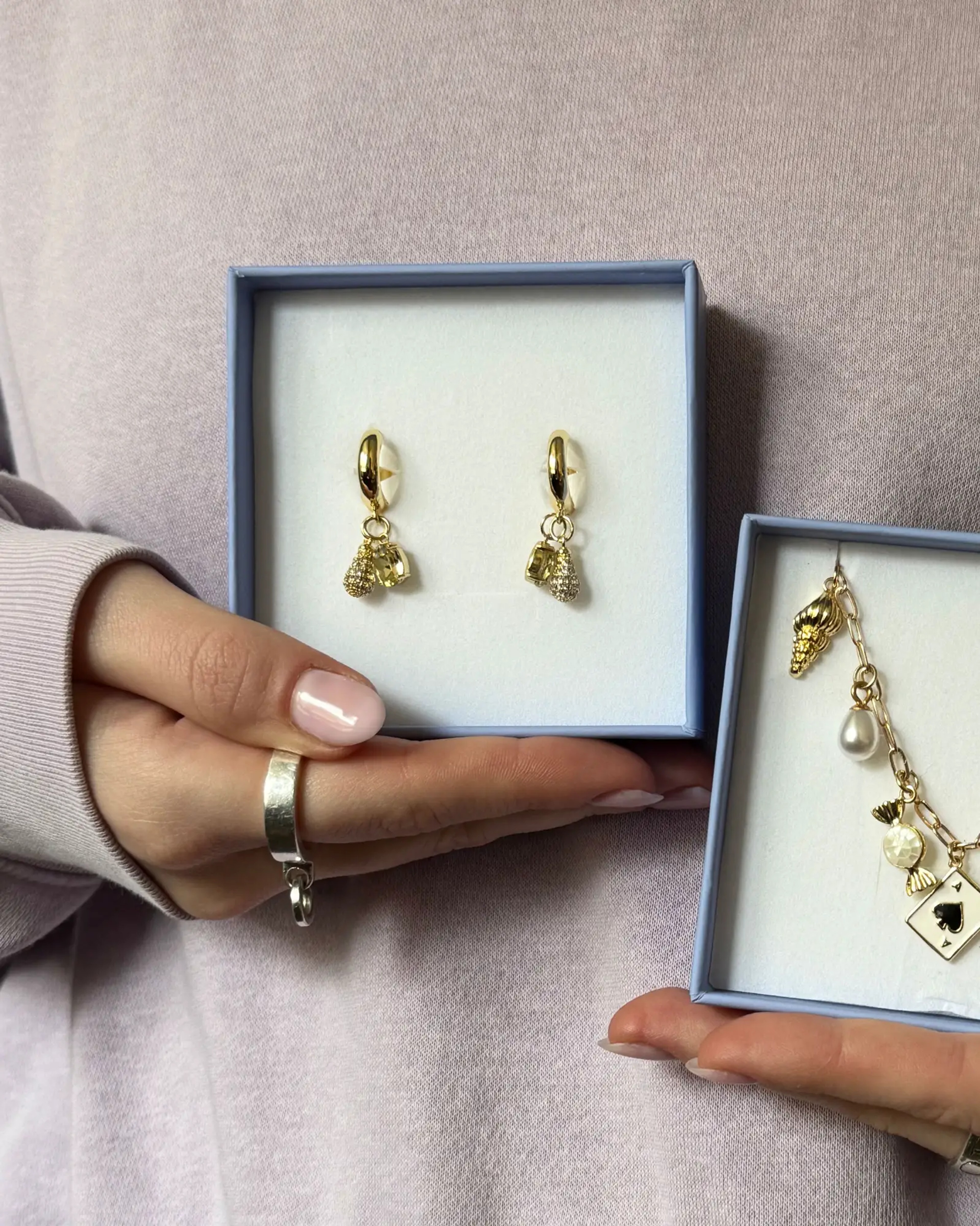 Choose between earrings in silver or gold, and add as many charms as you want!